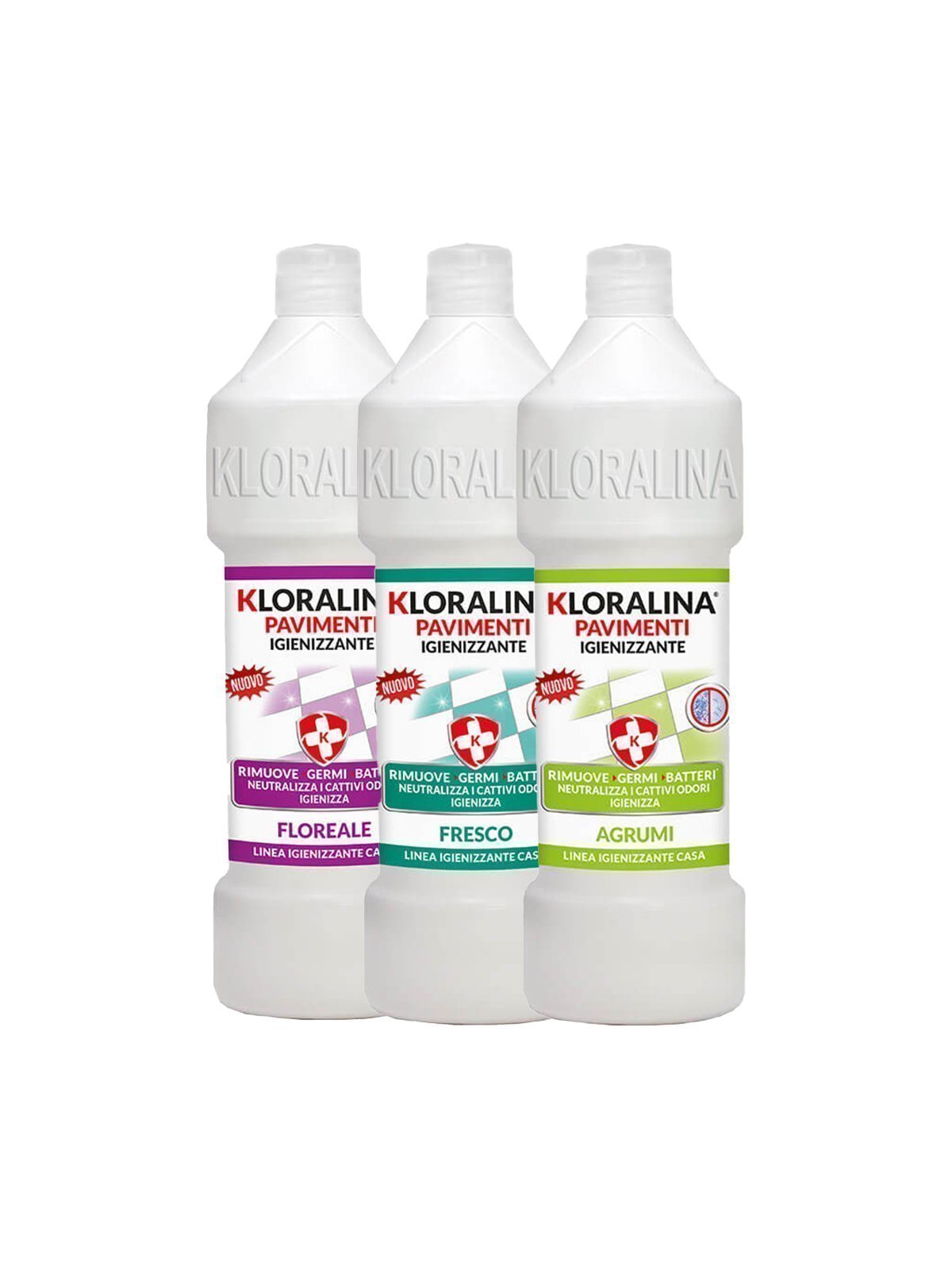 KLORALINA pavimenti igienizzante, grazie alla sua nuova ed innovativa formula studiata per detergere in profondità senza fatica, igienizza, aiuta a rimuovere germi e batteri* e fa brillare le superfici. Le pregiate note contenute al suo interno inebriano l’ ambiente di una gradevole e persistente fragranza.